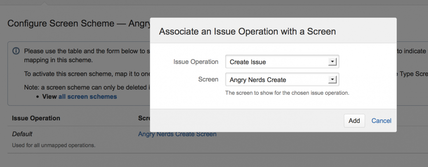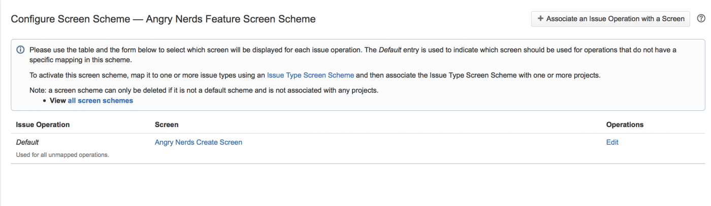 - Нажмите «Связать операцию задачи с экраном» (Associate an Issue Operation with a Screen), чтобы открыть это окно: