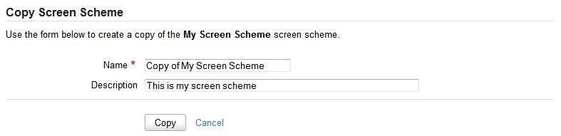 - Теперь вы будете перенаправлены на страницу «Копирование схем экрана» (Copy Screen Scheme). Введите имя и описание новой схемы экрана и нажмите кнопку «Копировать» (Copy).