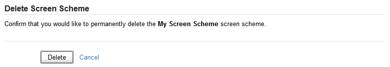 Обратите внимание, что схемы экрана, связанные с экранной схемой типа задачи, не могут быть удалены. Сначала вам нужно будет отредактировать схему экрана типа задачи и удалить схему экрана.