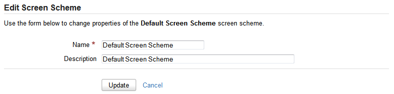 >«Задачи» (Issues). Выберите «Экраны» (Screens)> «Схемы экрана» (Screen Schemes), чтобы открыть страницу «Просмотр схем экрана» (View Screen Schemes).