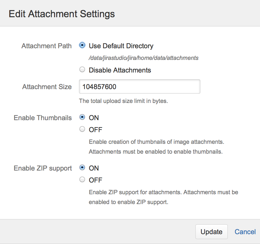 По материалам Atlassian JIRA Administrator's Guide: Configuring File Attachments