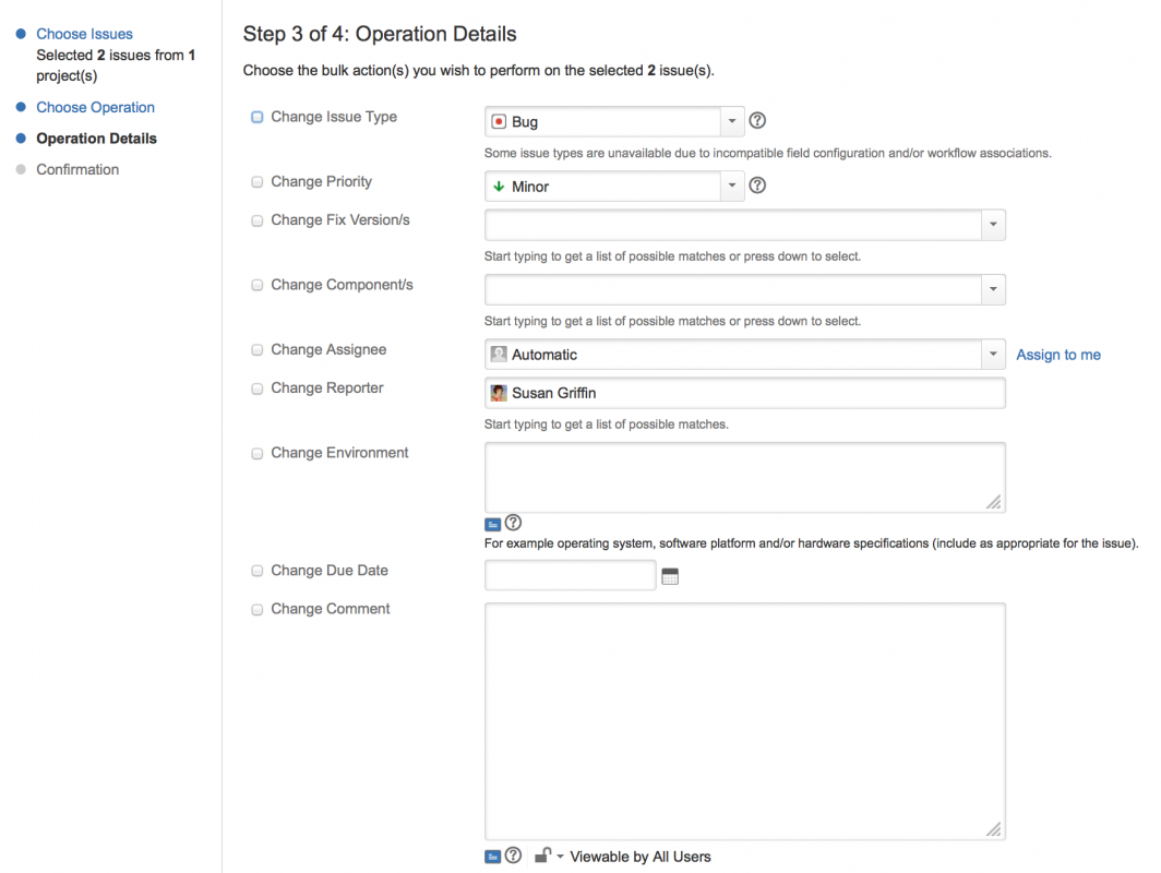 Тот факт, что JIRA позволяет вам настраивать различные средства визуализации для разных проектов / типов задач для одного и того же поля, имеет последствия для массовых операций. Кроме того, поскольку Wiki Style визуализатор по своей сути создает HTML в качестве конечного продукта, есть последствия для того, как это будет происходить, когда данные о задачах просматриваются вне веб - интерфейса JIRA.