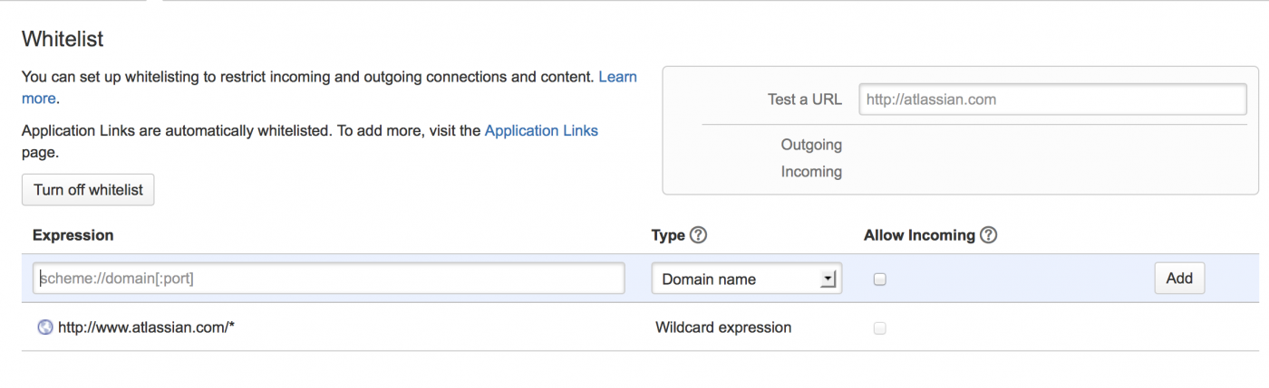 Администраторы JIRA могут разрешать входящие и исходящие соединения и контент из указанных источников, добавляя URL- адреса в белый список.