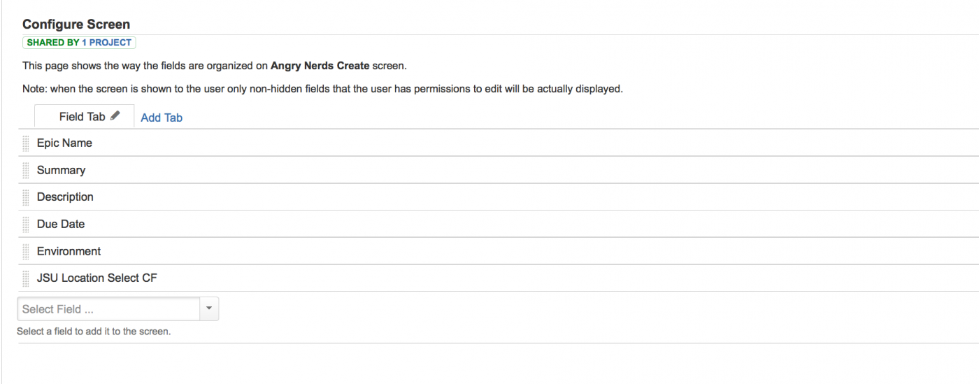Следовательно, поле может присутствовать на экране, используемого проекта, но если это поле скрыто в конфигурации поля, используемого проекта, это поле не будет отображаться для пользователя, когда отображается этот экран в проекте.