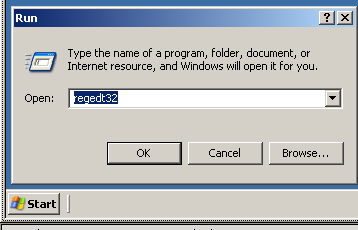 - Перейдите в меню «Пуск» (Start)> «Выполнить» (Run) и запустите «regedit32.exe».