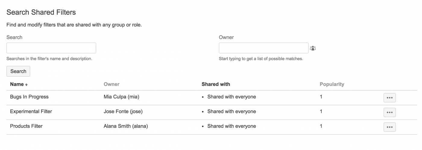 По материалам Atlassian JIRA Administrator's Guide: Managing Shared Filters