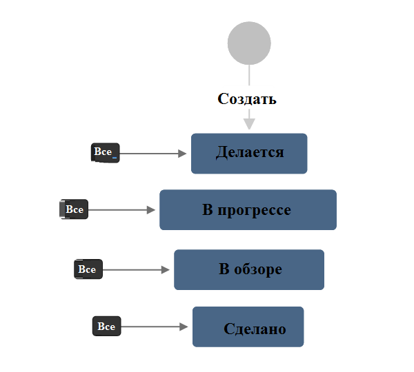 • Все (All) указывает, что вы можете перейти от любого состояния к соответствующему статусу.