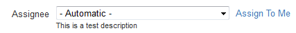 Скриншот: текст описания примера, отображаемый под полем «Assignee»