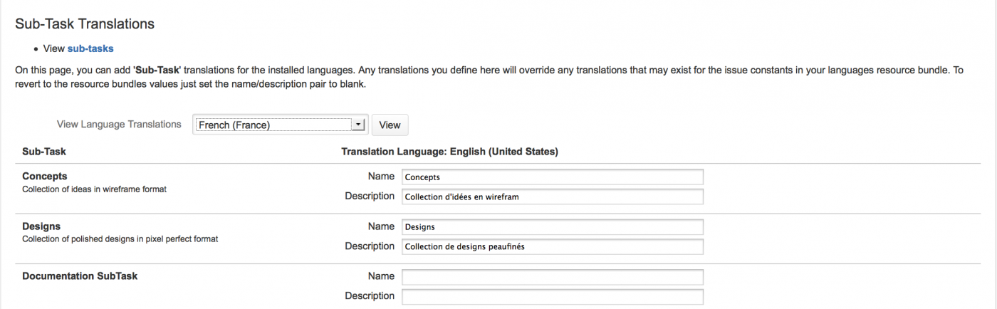 Это позволяет указать набор переводов для каждого доступного языка  —  предоставление каждому пользователю более полного перевода на их собственном выбранном языке. Названия переведенных полей и описания отображаются в JIRA, например, в отчетах, гаджетах и всех просмотрах задач.