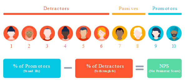После того, как вы собрали значительное количество ответов на ваш опрос NPS, вы группируете свои ответы на три группы: Промоутеры (9–10), Пассивы (7–8) и Детракторы (0–6).