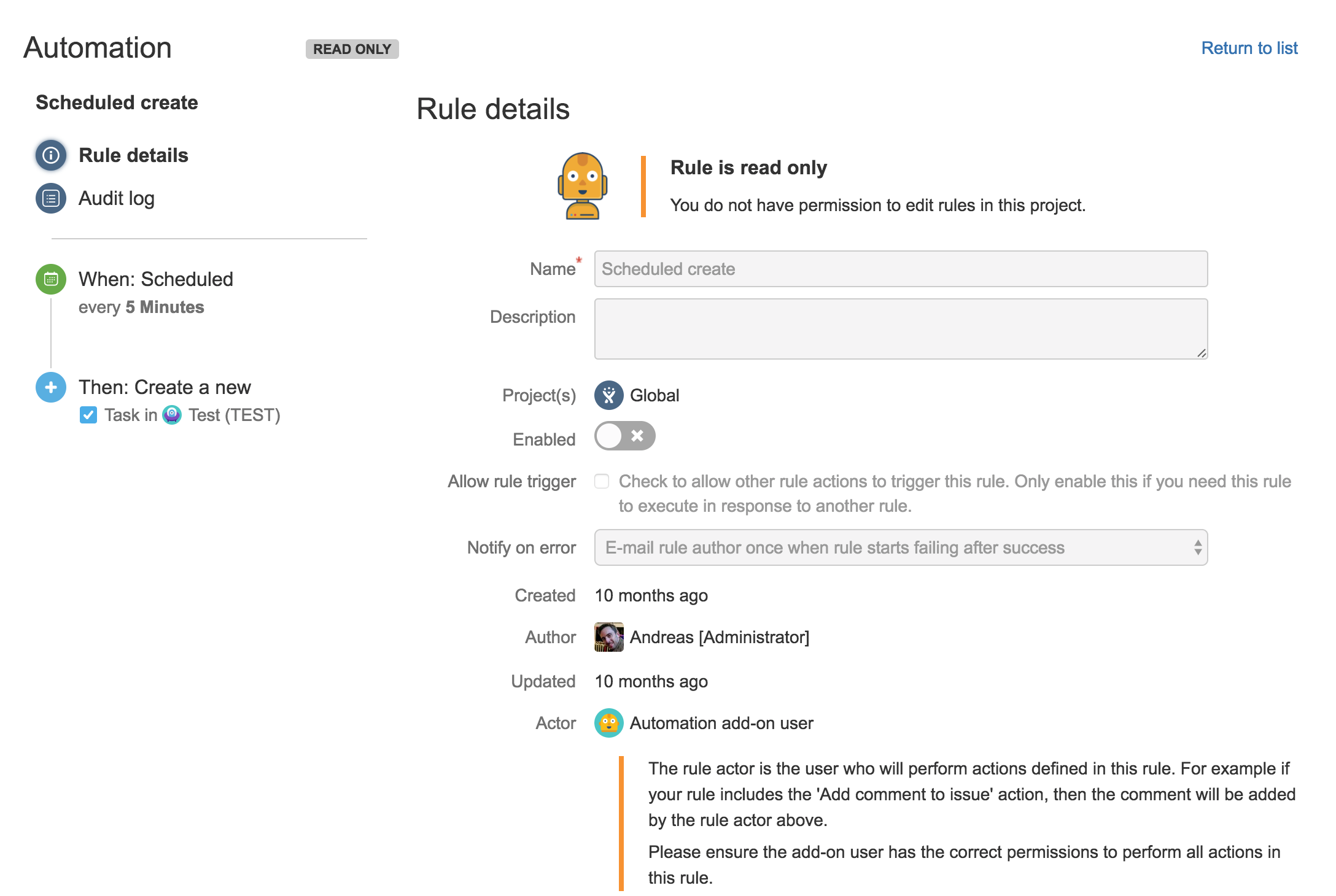 Администраторы проектов по-прежнему смогут просматривать правила, поскольку мы считаем, что для них важно понимать, что происходит в их проектах, но они будут представлены в представлении только для чтения: