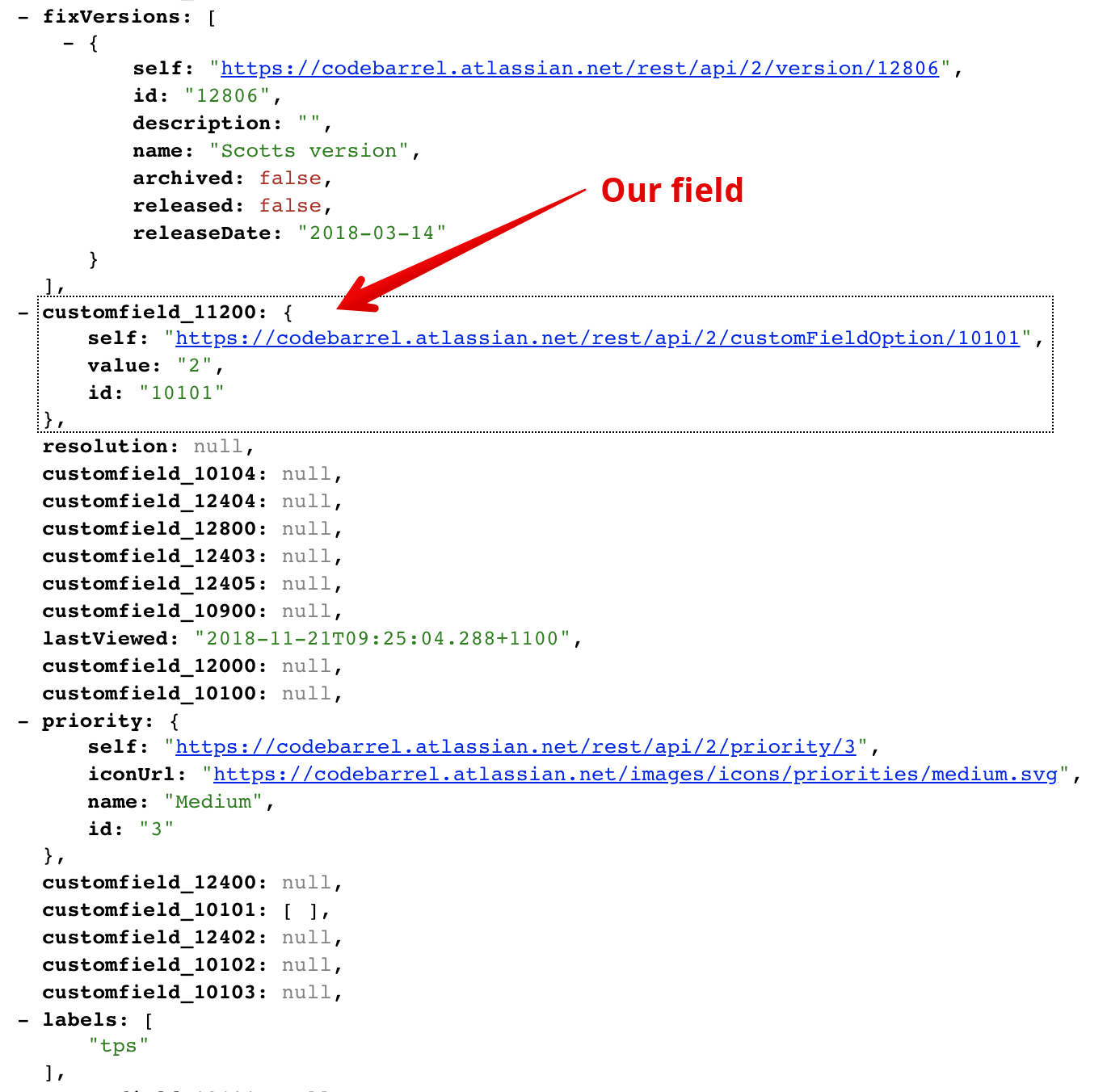 Иногда пользовательские поля в Jira могут быть сложными. В приведенном выше URL-адресе обратите внимание на параметр ? expand = names? Это дает следующее удобное руководство в начале вывода:
