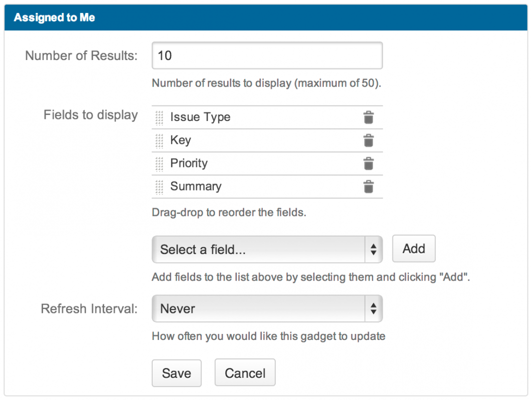 По материалам Atlassian JIRA User's  Guide: Adding the Assigned To Me Gadget