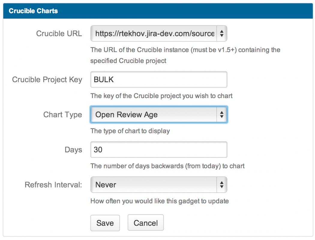 •  «Crucible URL» — Введите URL адрес вашего сервера Crucible .