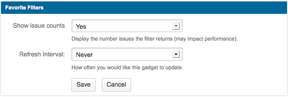 По материалам Atlassian JIRA User's  Guide: Adding the Favorite Filters Gadget