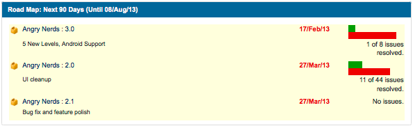 Гаджет «Дорожная карта» (Road Map) показывает версии, которые должны быть выпущены в течение определенного периода времени, и краткое описание прогресса, достигнутого в отношении завершения задач в этих версиях.