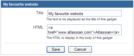 По материалам Atlassian JIRA User's  Guide: Adding the Text Gadget
