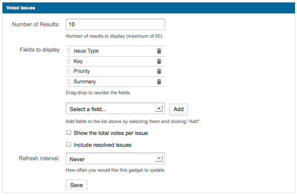 По материалам Atlassian JIRA User's Guide: Adding the Voted Issues Gadget Gadget