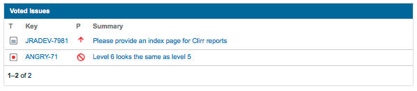 Гаджет «Утвержденные задачи» (Voted Issues) отображает задачи, за которые пользователи JIRA проголосовали.