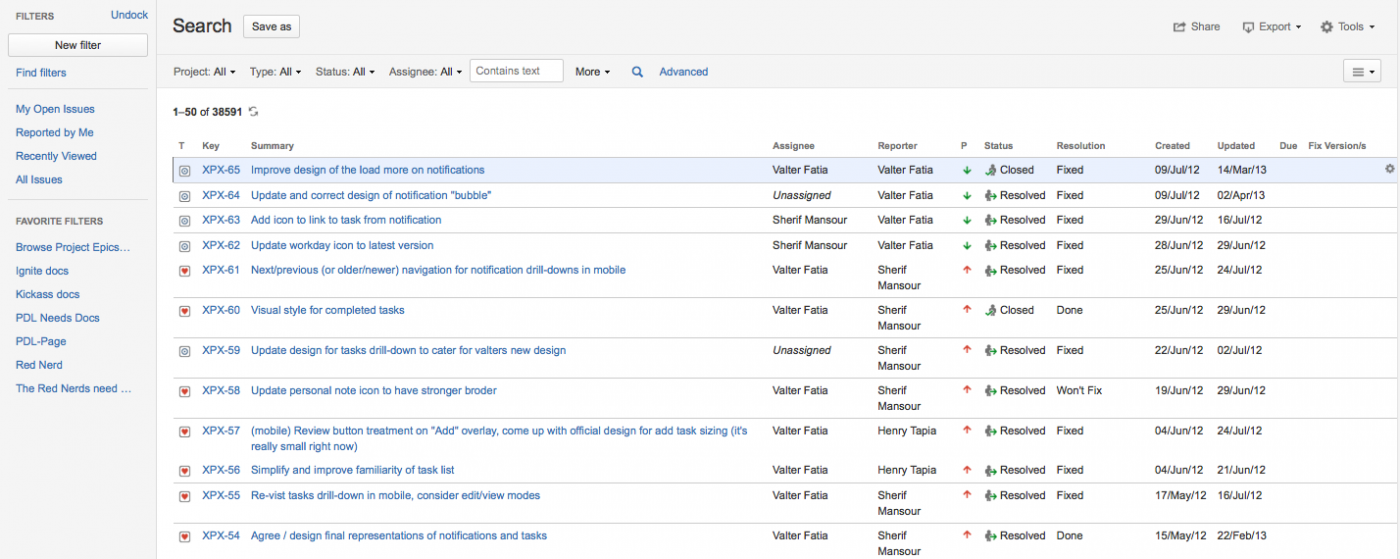 • Перейдите к разделу «Работа с результатами поиска», чтобы узнать, как сохранить результаты поиска в качестве фильтра задач, экспортировать результаты поиска и поделиться результатами поиска.