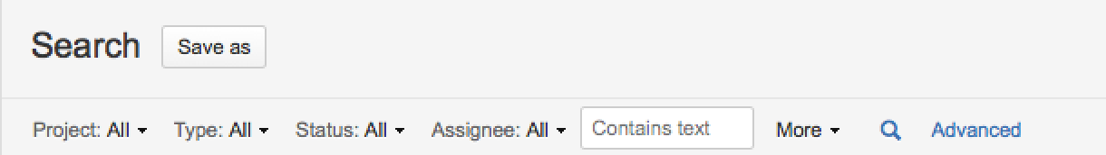 •  «Выбор полей в качестве критериев» (Select fields as criteria) - поля Project, Issue Type, Status и Assignee всегда доступны в качестве критериев. Если вы хотите выполнить поиск с использованием дополнительных полей в качестве критериев, нажмите «Дополнительно» (More) и отметьте нужные поля.