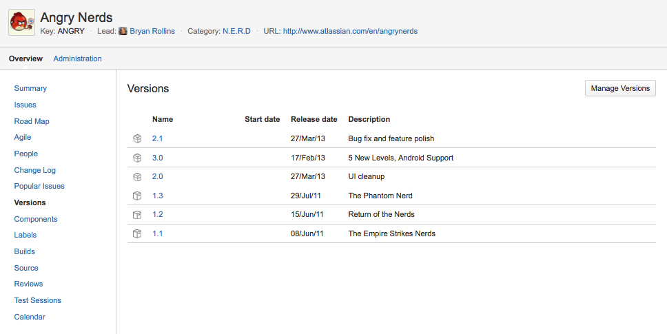 По материалам Atlassian JIRA User's Guide: Browsing a Project's Versions