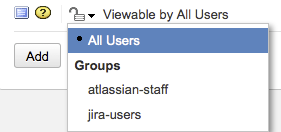 • При добавлении комментария вы можете установить комментарий для просмотра (Viewable by) только членами определенной роли проекта или группой пользователей; или вы можете разрешить  просматривать его всем пользователям.