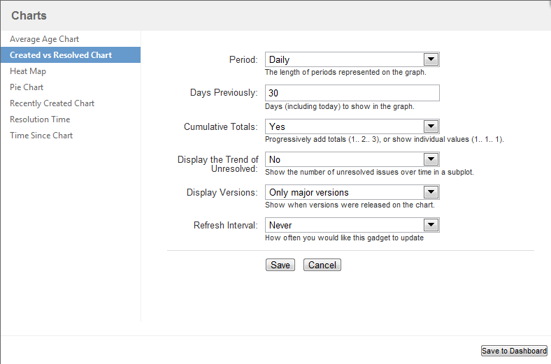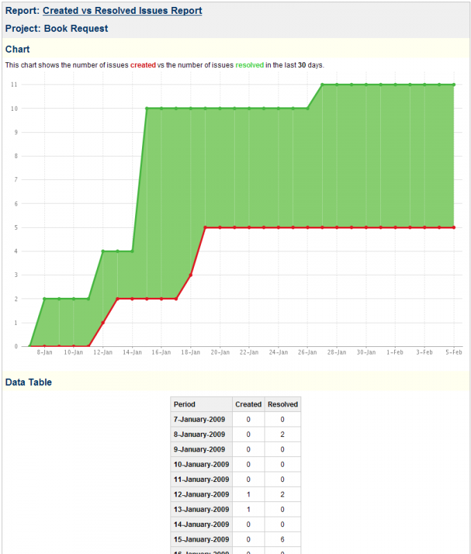 По материалам Atlassian JIRA User's Guide: Created vs Resolved Issues Report
