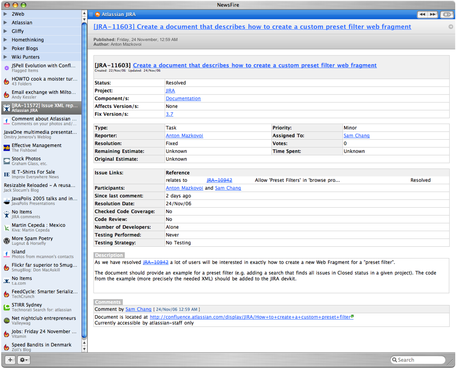- Если вы получаете пустой RSS - канал, убедитесь, что вы вошли в JIRA - см. Доступ к защищенным данным (см. ниже).