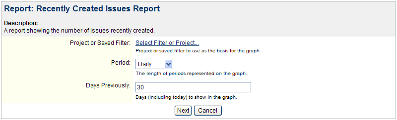 По материалам Atlassian JIRA User's Guide: Recently Created Issues Report