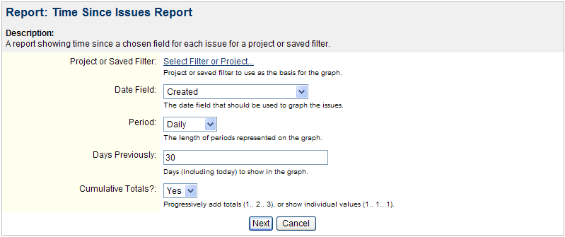 По материалам Atlassian JIRA User's Guide: Time Since Issues Report