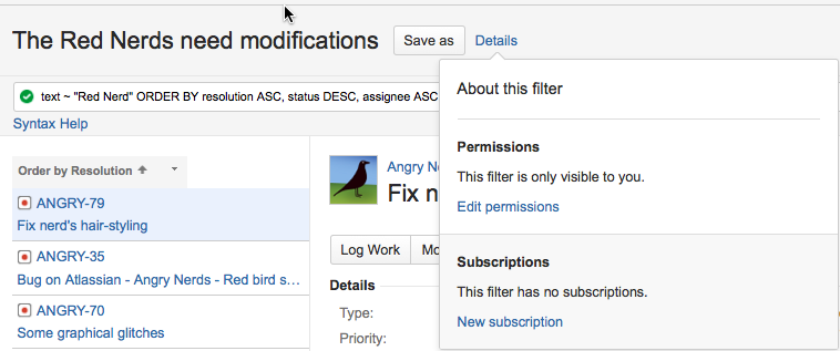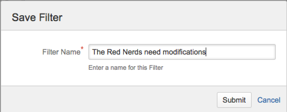 Вы можете обновить сведения – имя, описание, общий доступ, избранное - а также критерии поиска существующего фильтра.Обратите внимание, что вы можете обновлять только созданные фильтры. Чтобы отредактировать фильтр, который был вашей собственностью, либо клонировать (или копировать) общий фильтр, необходимо просить администратора JIRA изменить права собственности на фильтр.