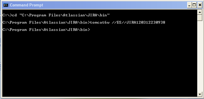 cd C: \ Program Files \ Atlassian \ JIRA \ bin