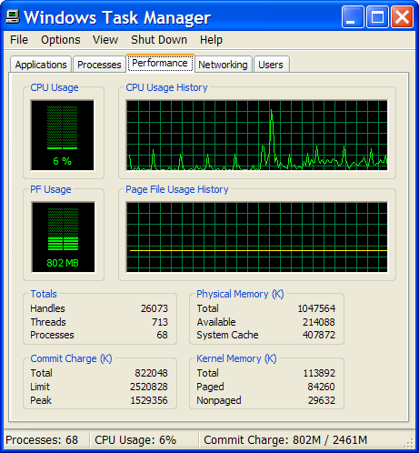 В диалоговом окне «Закрыть программы» (нажмите ctrl-alt-delete), выберите вкладку «Производительность»: