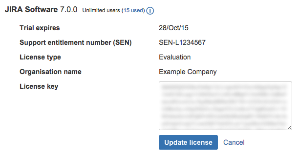 - Нажмите кнопку «Обновить лицензию», чтобы обновить приложение JIRA с новой лицензией.