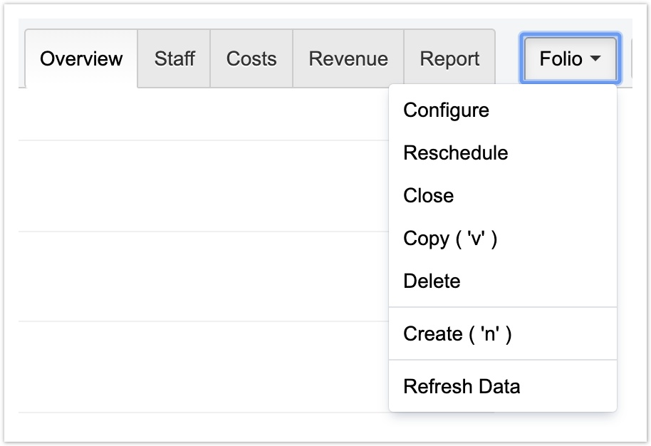 Вы можете создать новое фолио, щелкнув «Создать» ("Create") в меню действий фолио, доступное в режиме просмотра фолио, и щелкнув «Далее» ("Next").