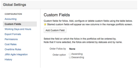 Глобальная конфигурация Tempo Budgets позволяет вам указать параметры конфигурации, которые обеспечат конфигурацию по умолчанию для новых созданных вами фолио. Чтобы получить доступ к глобальной конфигурации Tempo Budgets, перейдите на страницу «Управление портфолио» ("Manage Portfolios") и нажмите «Глобальные настройки» ("Global Settings") в правом верхнем углу страницы. Вы также можете получить доступ к глобальной конфигурации через конфигурацию надстройки: перейдите в «Администрирование»> «Надстройки» ("Administration > Add-ons"), а затем нажмите Tempo Budgets > «Глобальные настройки» ("Global Settings") на панели навигации слева.