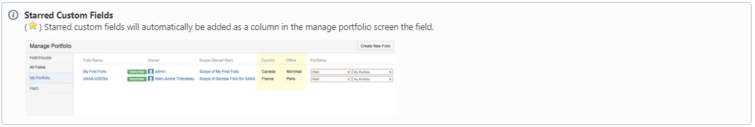 Можно выбрать одно из существующих пользовательских полей фолио, которое будет использоваться для ранжирования (определения приоритета) фолио. Значение поля ранжирования затем будет использоваться для определения порядка сортировки фолио на экране «Управление портфолио» (" Manage Portfolios") и в качестве порядка сортировки по умолчанию для фолио в обзорах портфолио и в отчете руководящего комитета.