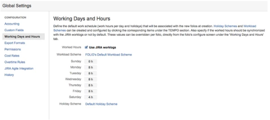 Определяет нерабочие дни по умолчанию для фолио. Схемы праздничных дней определяются администраторами JIRA в разделе Tempo / «Схемы праздников» ("Holiday Schemes") на странице надстроек JIRA. Щелкните название схемы праздников, чтобы просмотреть или изменить ее. |