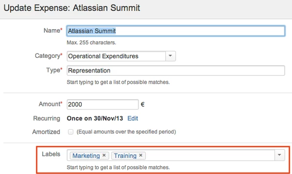 Сами метки обрабатываются JIRA и редактируются, когда вы вводите их в свои задачи. Tempo Budgets не позволяет изменять метки, а просто позволяет связывать их с  расходами и доходами. Вы можете добавить метку (и) для всех статей бюджета, для фактических расходов и фактических доходов, отредактировав их и указав поле «Метки» ("Labels") в диалоговых окнах редактирования. Введите в поле «Метки» ("Labels"), чтобы получить список соответствующих существующих меток. Вы сможете использовать только предложенные ярлыки, но не создавать новые.