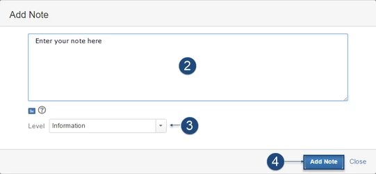 - В диалоговом окне «Добавить примечание» введите примечание, затем выберите тип уровня из раскрывающегося списка. По умолчанию это «информация».