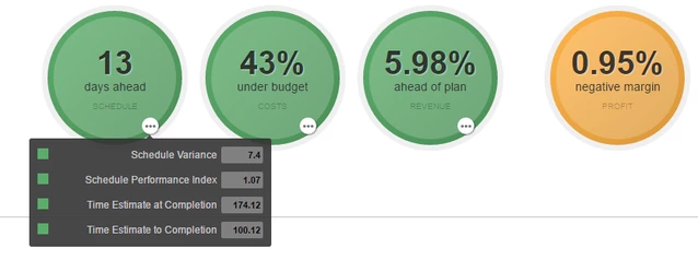Разница между запланированными и прогнозируемыми сроками. Если в портфолио доступно несколько фолио, отображаемое число отражает худшую производительность расписания среди фолио в этом портфолио. |