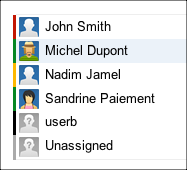 Цветная вертикальная полоса слева от каждого ряда сотрудников указывает статус сотрудника. Строка состояния может помочь выявить потенциальные проблемы.