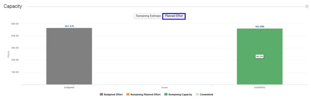 Оно также отображает диаграмму возможности, которая сравнивает общие запланированные усилия с одним из следующих показателей: