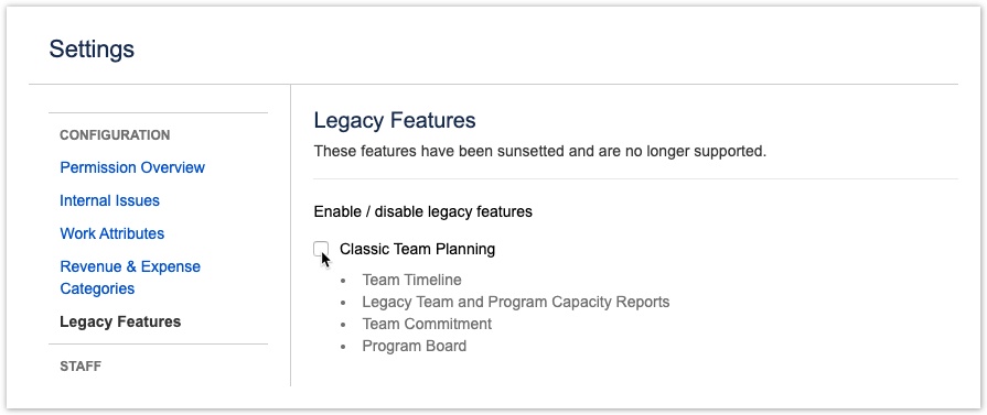 - (i) Для Tempo Planner версии 7.13.0 и новее функции Classic Team Planning по умолчанию отключены.