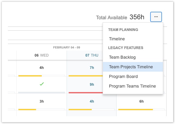 Чтобы получить доступ к наследуемым функциям в Tempo Planner, вам не нужны специальные разрешения. Доступны те функции, которые были включены в «Надстройки> Наследуемые функции» ("Add-ons > Legacy Features"):