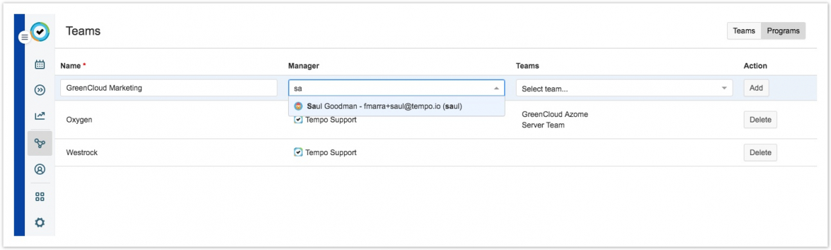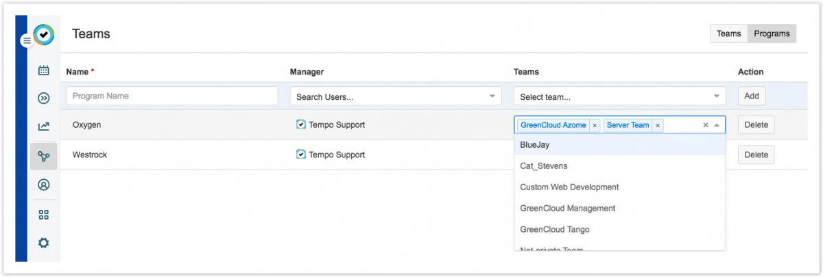 1. Выберите «Команды» ("Teams ") на боковой панели Tempo.