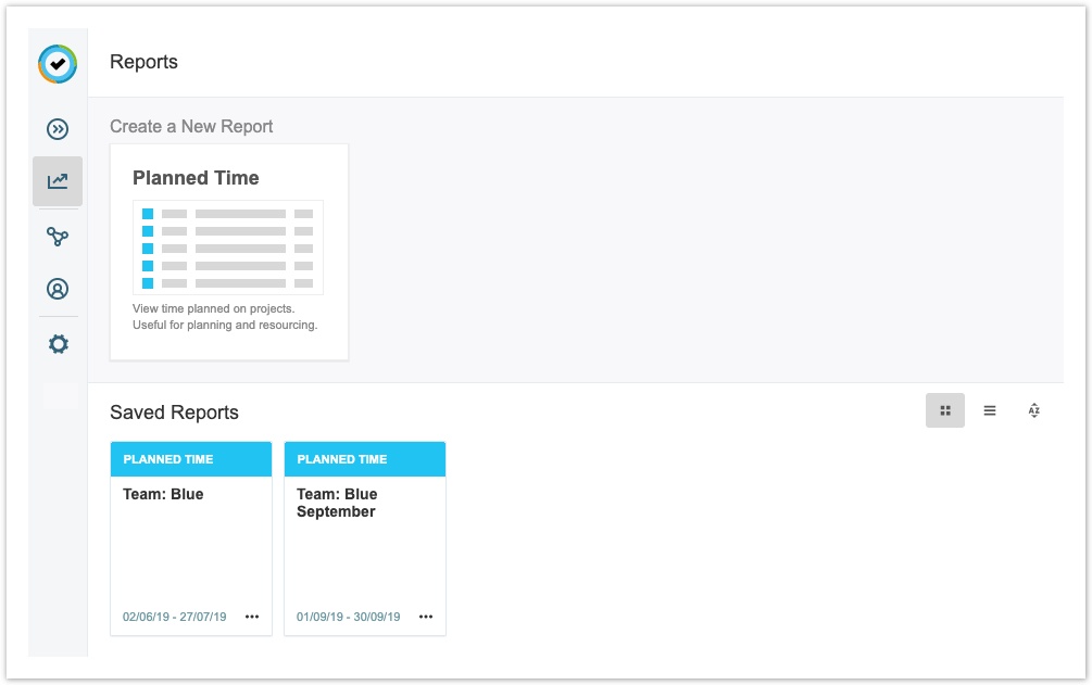 Вы можете создавать отчеты при просмотре «Планирование ресурсов» ("Resource Planning") или в обзоре отчетов, где вы также можете получить доступ к любым сохраненным отчетам.
