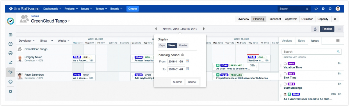 • Функции классического планирования команды по умолчанию отключены для версии 7.13.0 и более поздних версий.Для включения функций Classic Team Planning требуется разрешение администратора Tempo.