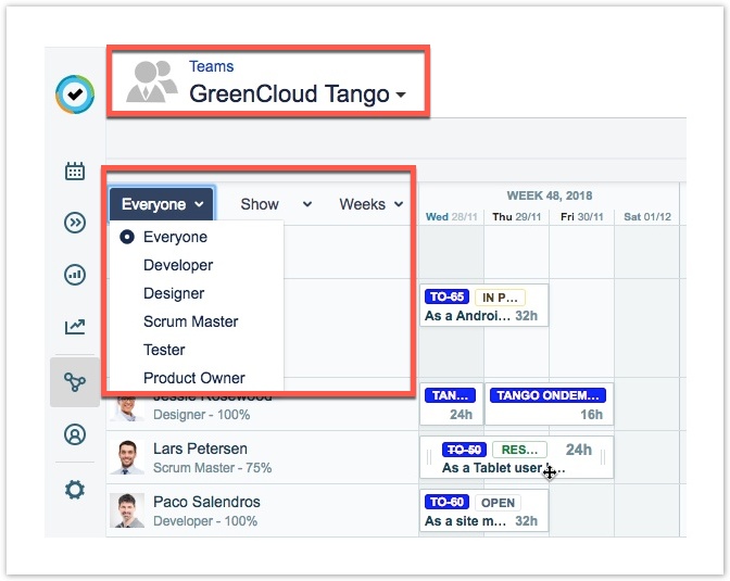 • Временная шкала команды - это классическая функция планирования команды, которая была сделана «наследуемой» функцией в Tempo Planner 7.13.0.